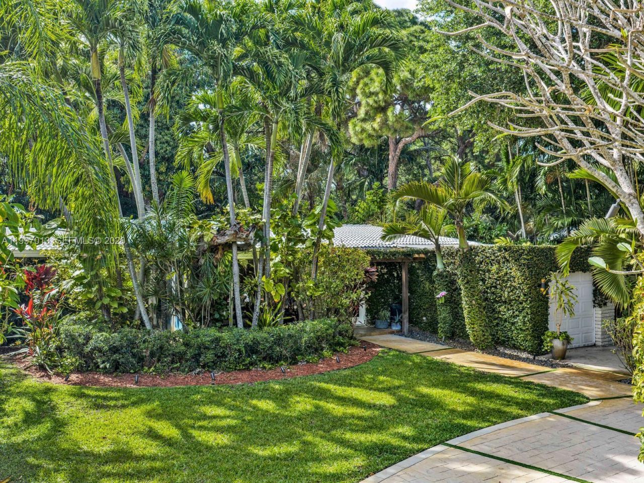 Welcome to Casa Selva in Biscayne Park? a tucked-away tropical mid-century retreat where architecture and nature exist in perfect harmony. Set on an expansive 11,475 SF lot, this 3-bedroom, 2-bath residence offers 2,242 SF of living space enveloped in lush, private gardens. Enter into a dramatic open living, dining, and media space defined by soaring vaulted wood beam ceilings and walls of glass that frame the tropical landscape?creating a serene, gallery-like atmosphere that feels torn from the...Welcome to Casa Selva in Biscayne Park? a tucked-away tropical mid-century retreat where architecture and nature exist in perfect harmony. Set on an expansive 11,475 SF lot, this 3-bedroom, 2-bath residence offers 2,242 SF of living space enveloped in lush, private gardens. Enter into a dramatic open living, dining, and media space defined by soaring vaulted wood beam ceilings and walls of glass that frame the tropical landscape?creating a serene, gallery-like atmosphere that feels torn from the pages of Architectural Digest. The updated chefs kitchen features a gas range, eat-in island, and abundant storage. The split floor plan places the primary suite with double-vanity renovated bath on the north side, while two guest bedrooms share a stylish Jack & Jill bath to the south. A spacious Florida room with brick accents opens to a backyard oasis complete with entertaining patio and mango trees. Additional features include new A/C, one-car garage, utility storage, and curated landscape lighting. Hidden, soulful, and architecturally rich?this is Biscayne Park living at its most distinctive.